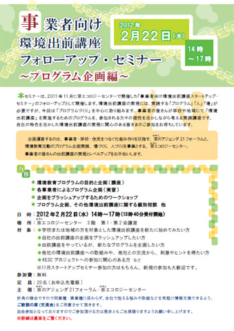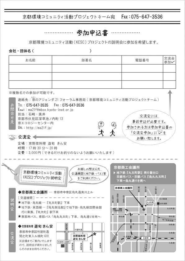 問合せ・申込み先 京(みやこ)のアジェンダ21フォーラム事務所(担当:井上)