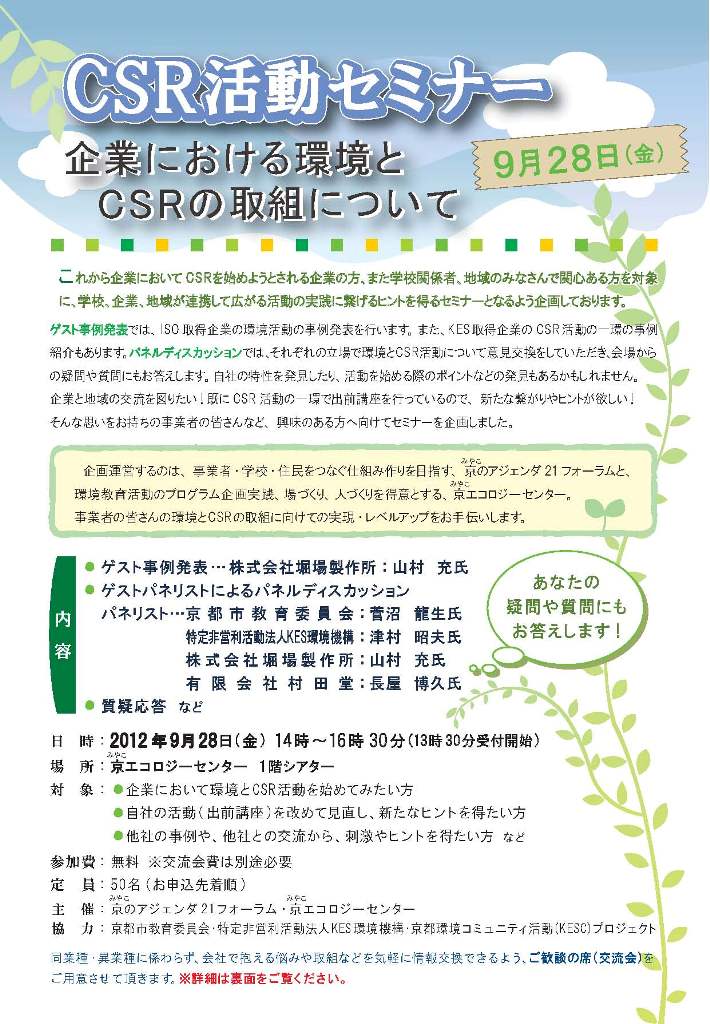 主催 京のアジェンダ21フォーラム(京都市委託事業)
