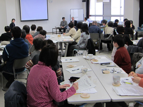 内容は、ひのでやエコライフ研究所の鈴木靖文さんから最新の省エネ術の講演、金沢良彦さんの「日本列島エコ徒歩縦断パート2」の報告のあと、お2人を交えて今年度の省エネ相談所のふりかえりをもとに参加者同士の意見・情報交換を行いました。